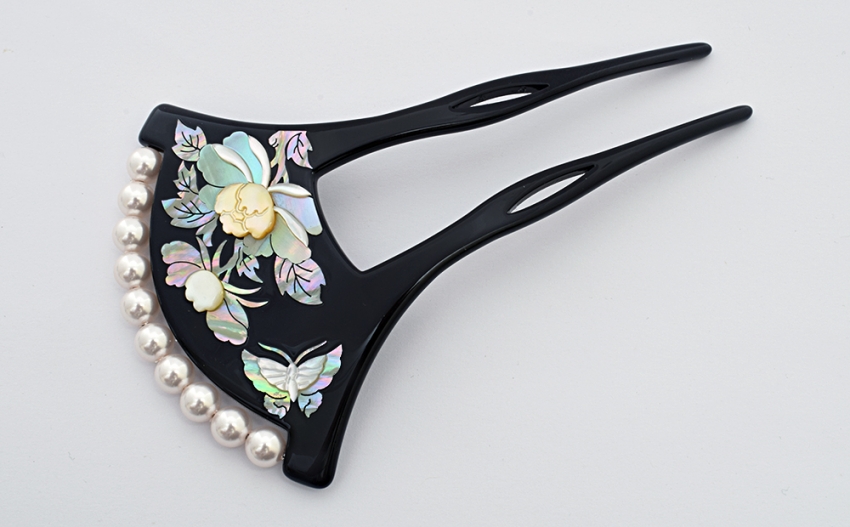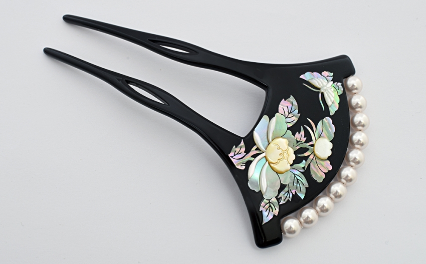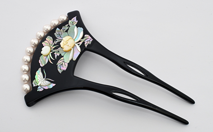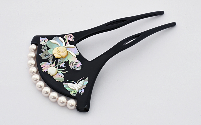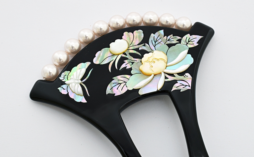HR-0095 牡丹に蝶螺鈿簪 新着商品